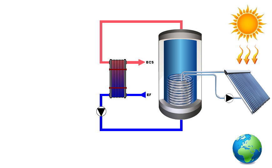 Le circuit hydraulique alimentant les capteurs solaires est empli d'eau glycolée pour la protection hors gel en hiver, ce qui demande l'usage d'un échangeur pour isoler l'eau glycolée et l'eau de stockage.