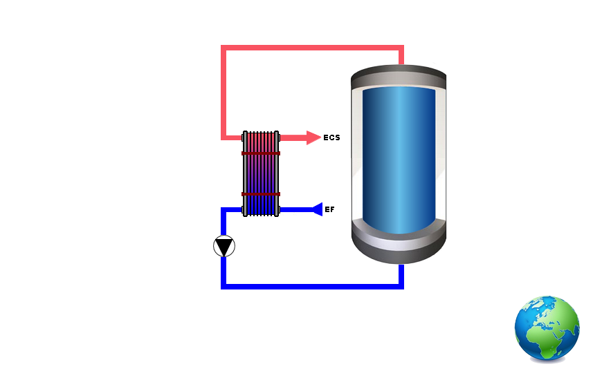 Un avantage secondaire est que le ballon de stockage d'appoint est un simple ballon sans revêtement intérieur particulier puisqu'il ne contient que de l'eau du réseau de chauffage.