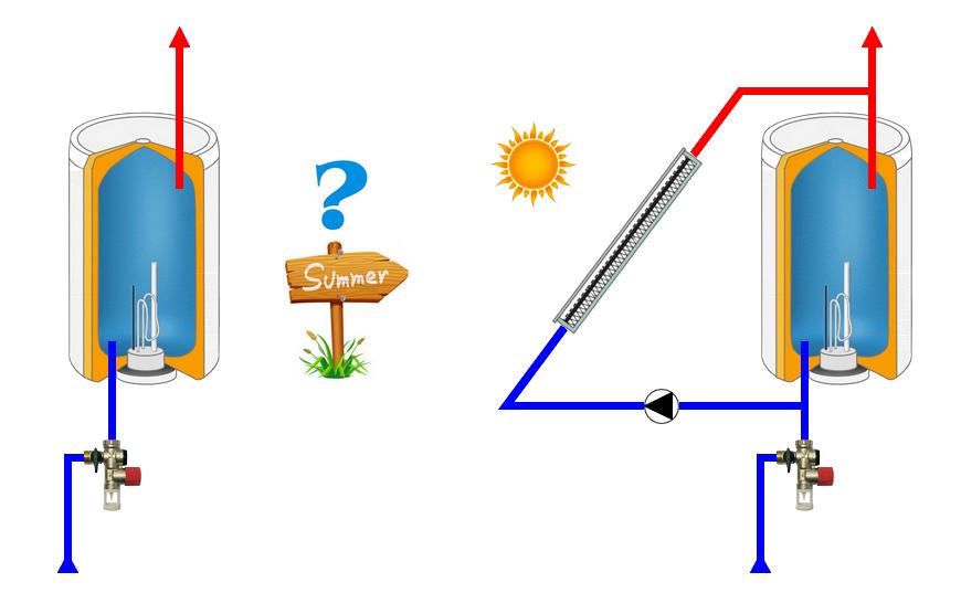 Dès que la température du ballon de stockage solaire est supérieure de quelques degrés à celle de la temmpérature d'ECS à produire, la régulation fait appel à l'eau du ballon solaire comme source d'énergie pour la production d'ECS.
